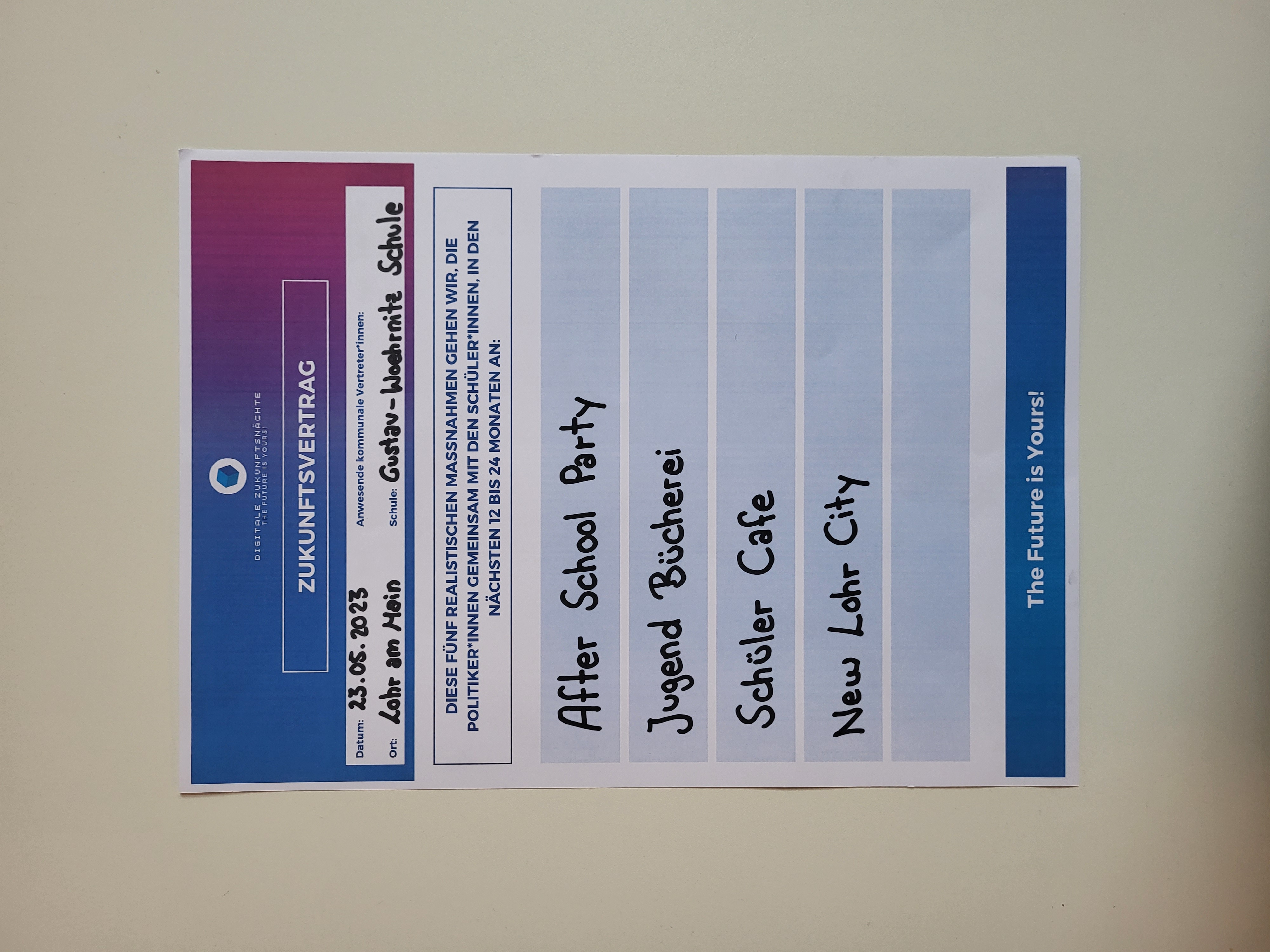 Aus schulinternen Gründen wurde von der Umsetzung des Zukunftsvertrages 2023 abgesehen.